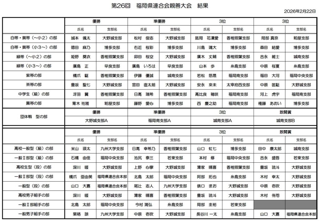 第26回福岡県親善大会が、無事開催されました。