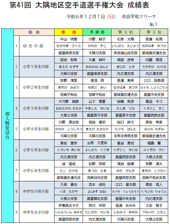 第41回大隅地区大会が、鹿屋市串良町の串良平和アリーナで開催されました。